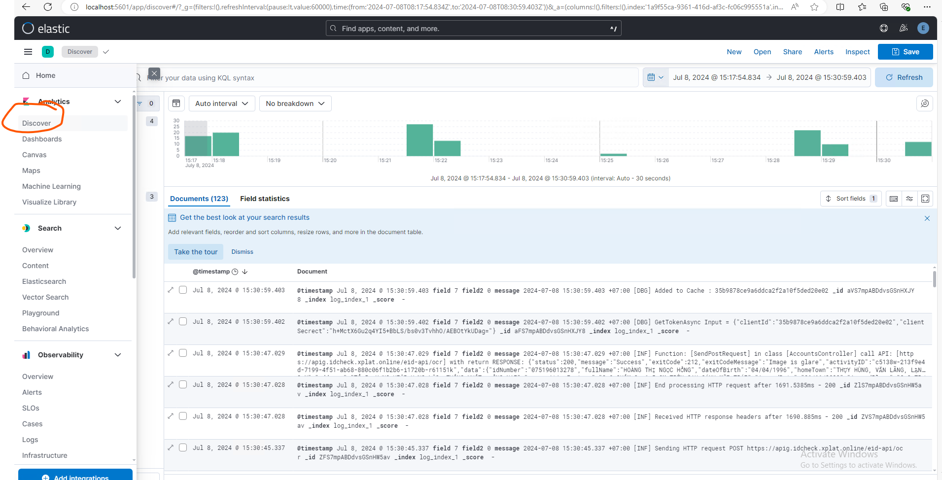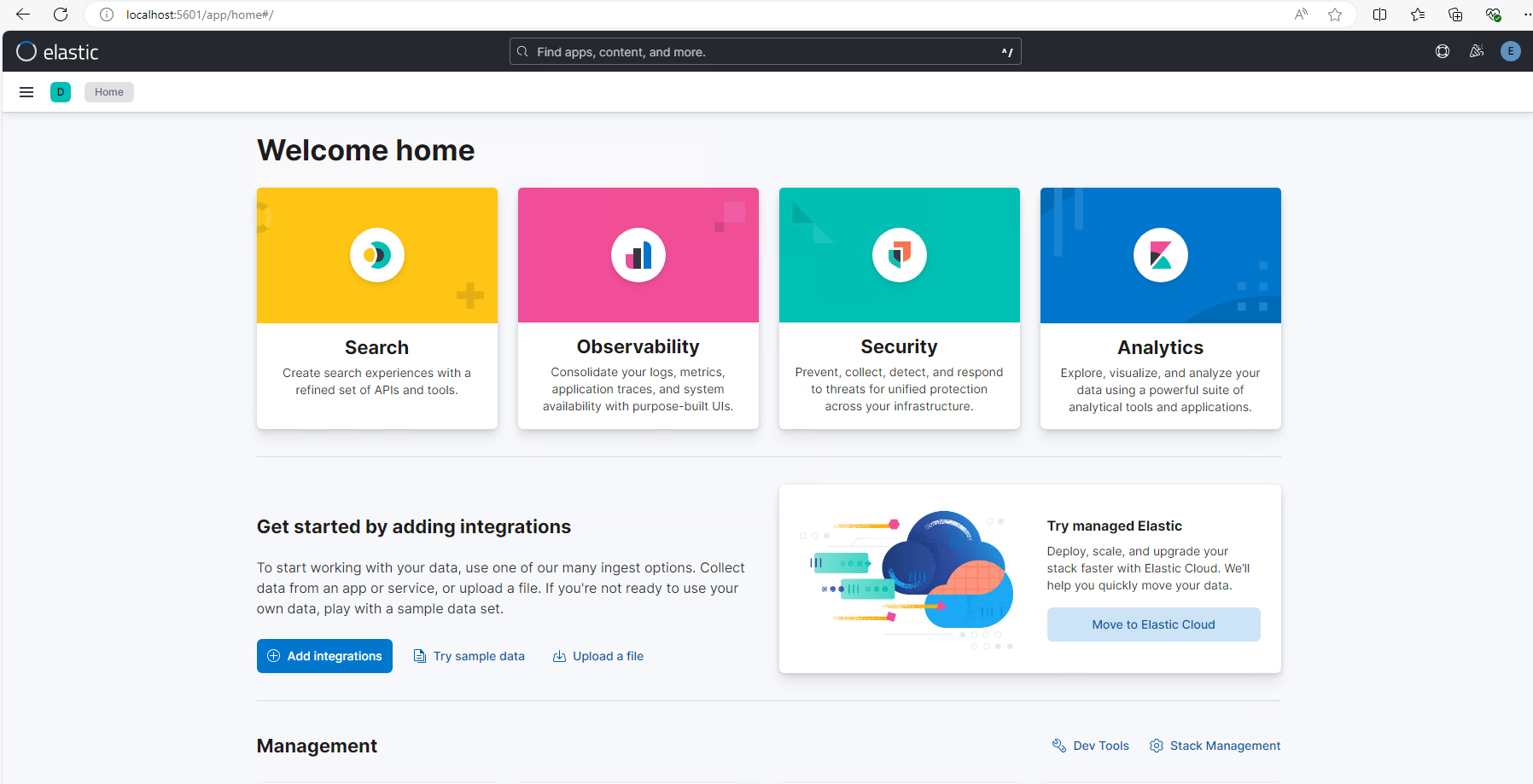 Step 3: After executing the kibana.bat in Step 2, the application will provide a URL to start the Kibana application on your local machine.