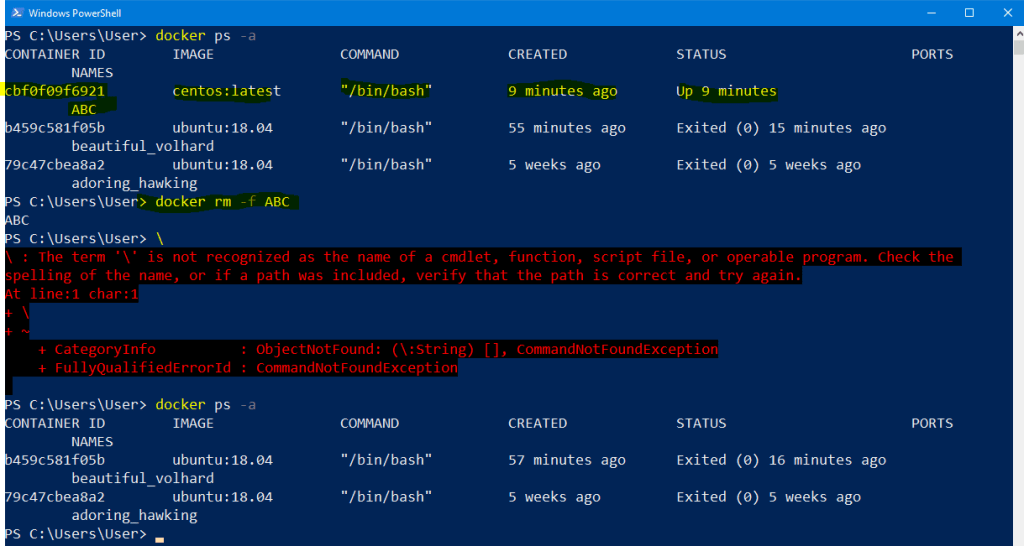 Nếu ta có thêm tham số là docker ps -a thì nó sẽ liệt kê tất cả các container đang chạy và không chạy.