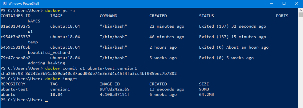 Chạy một container C1 từ image ubuntu-test (có ID là 98f8…)