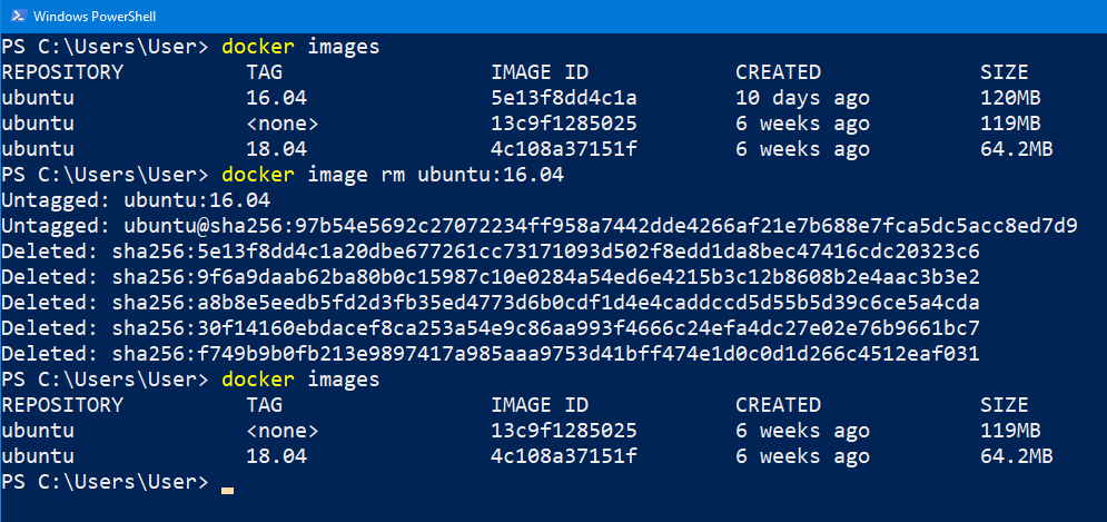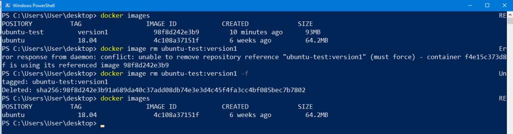 Ví dụ khi ta xóa một image mà báo không cho xóa thì ta dùng tham số -f để force việc xóa.