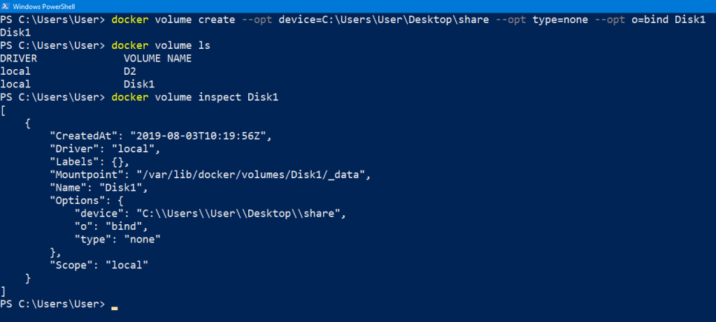 Docker volume create –opt device=folder_share –opt type=none –opt o=bind ten_o_dia