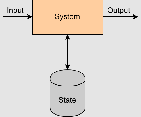 Hãy tưởng tượng một hệ thống lưu trữ tuổi của tất cả nhân viên trong một công ty, và chúng ta có thể hỏi hệ thống về độ tuổi lớn nhất. Hệ thống này là stateful vì kết quả phụ thuộc vào những nhân viên đã được đăng ký trong hệ thống.